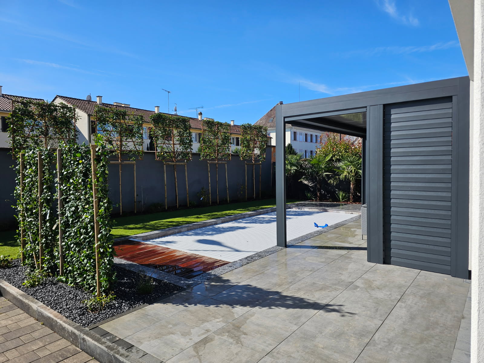 Nous assurons la fabrication et/ou pose de A à Z : terrassement du terrain, mise en place de dalle béton pour des structures en bois, préparation pour la mise en place de coque, nous assurons la maçonnerie pour les structures en béton (Toute la partie technique se fera en partenariat avec le pisciniste Blue Piscine). Nous allons jusqu’à la conception du local technique.